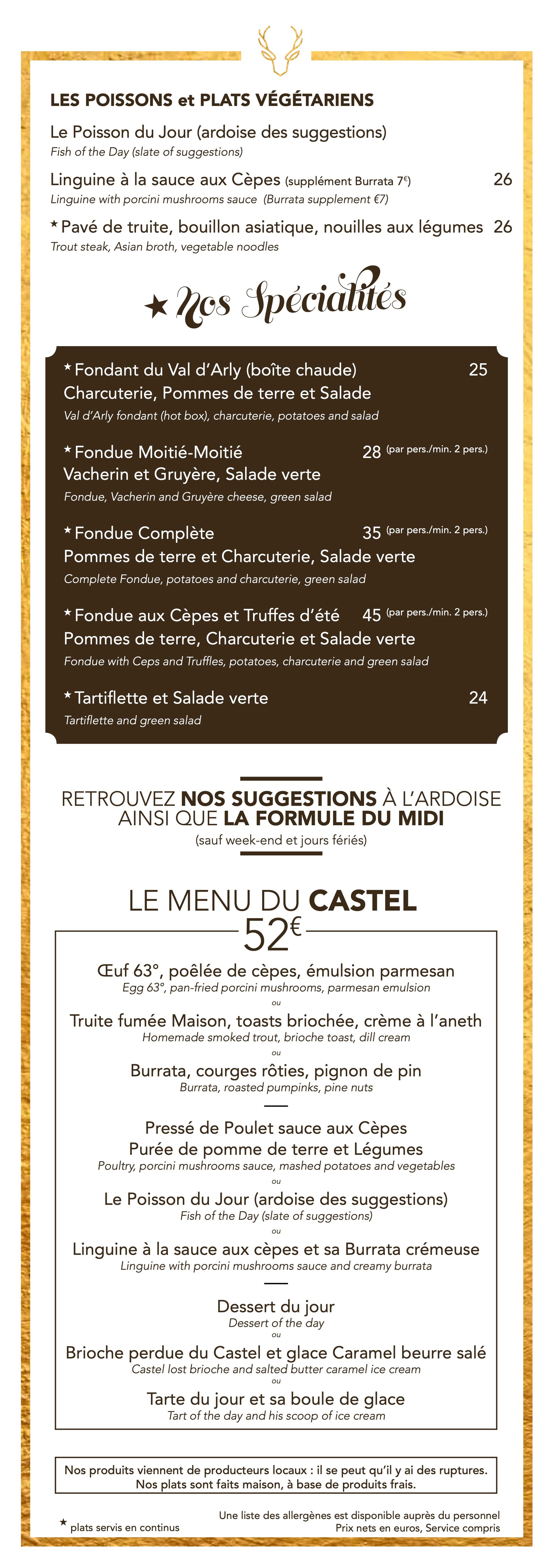Speisekarte Restaurant