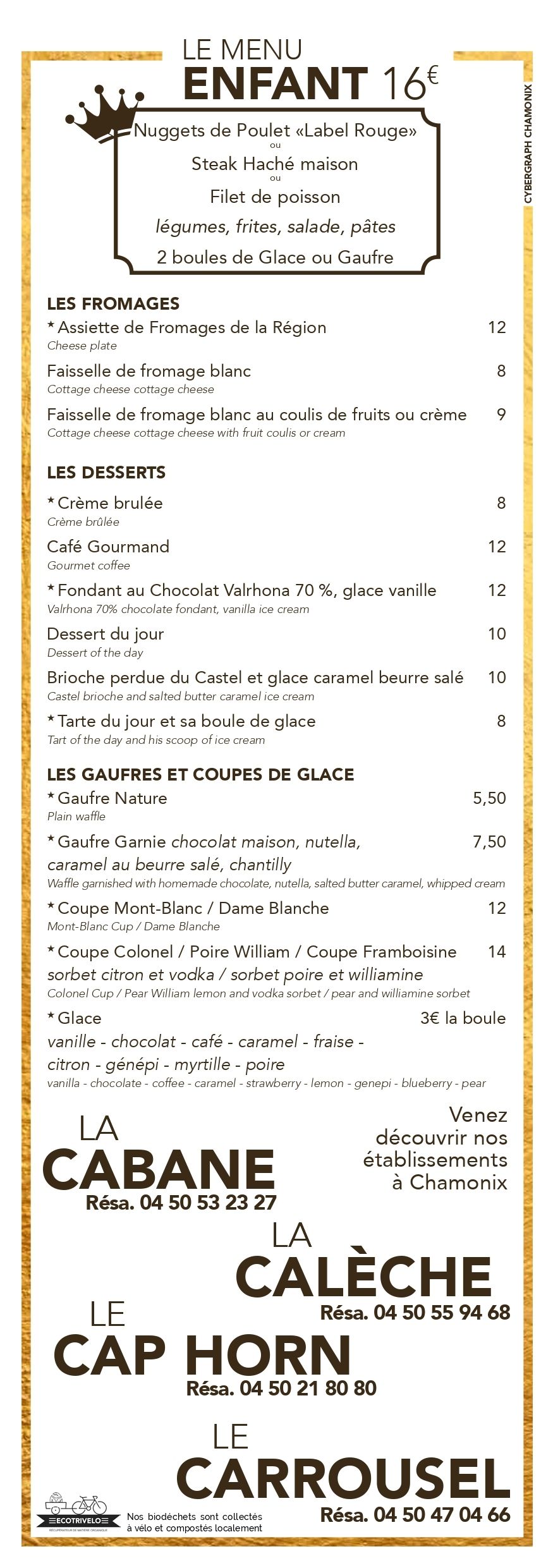 Le restaurant qui possède assurément une des décorations les plus extraordinaires de Chamonix. Ce lieu authentique propose une restauration Savoyarde.